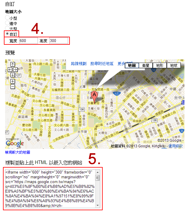 4.複製產生的語法,並將<iframe width="600" 改為<iframe width="100%"。